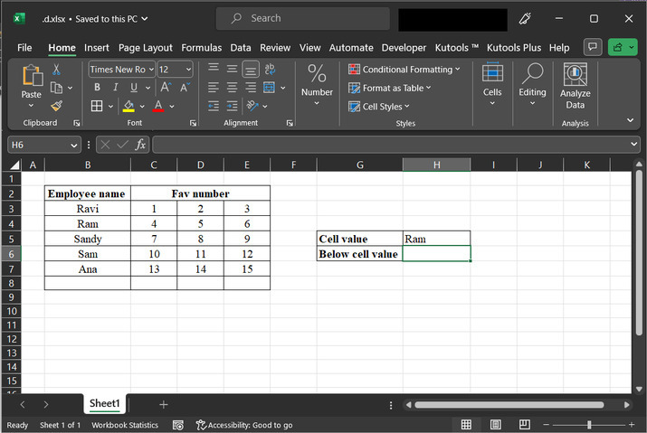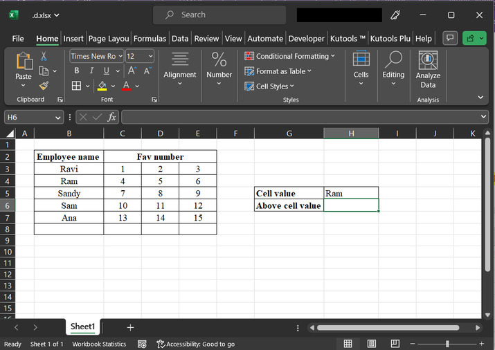此步骤将指导用户为要在表格中查找数据的值创建一个单元格标题,如上所述。然后转到G6单元格标题。此单元格标题将存储生成的数据值。请参考以下截图: