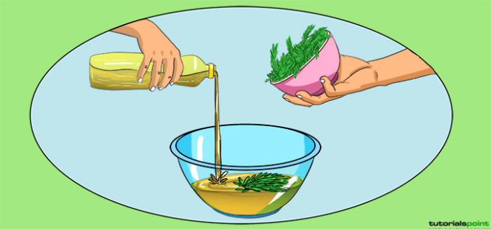 收集材料,包括迷迭香植物的五根茎和枝条。两杯油可以是荷荷巴油或橄榄油。甜杏仁油也是可以的。用冷水清洗和清洁迷迭香。去除污垢和灰尘。收集一杯迷迭香叶。在砂锅中加入两杯油。橄榄油因其用途广泛而主要被人们青睐。如果计划进行美容护理,荷荷巴油或甜杏仁油会更好。