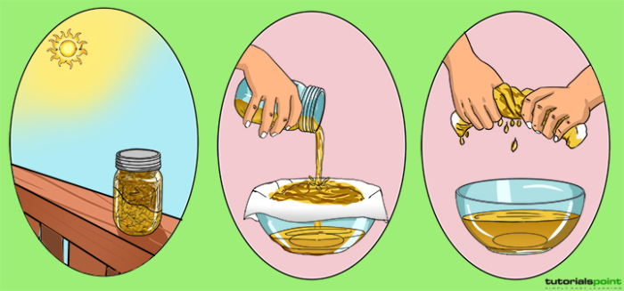 将罐子的盖子牢牢地盖上。将罐子放在安全的地方,暴露在阳光直射下。等待两周的日晒。油开始变暖,并充满迷人的迷迭香香气。