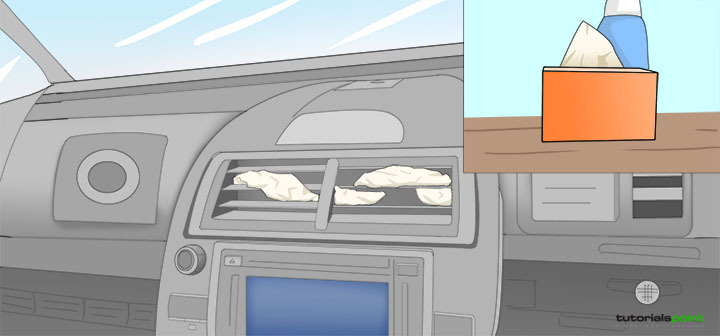 从空调通风口悬挂一些烘干纸,以快速清新空气。布片将充当汽车除臭剂。此外,一个角落有几个小孔的烘干纸袋比普通的汽车清新剂更持久。将其放在座椅下方,以保持持久的香味。你也可以使用普通的家庭清新剂制作自己的空气清新剂。你可以将它们储存在带孔盖的小网眼袋或罐子里。将它们放在仪表板上、杯架上或座椅下方,以获得清爽的香味。