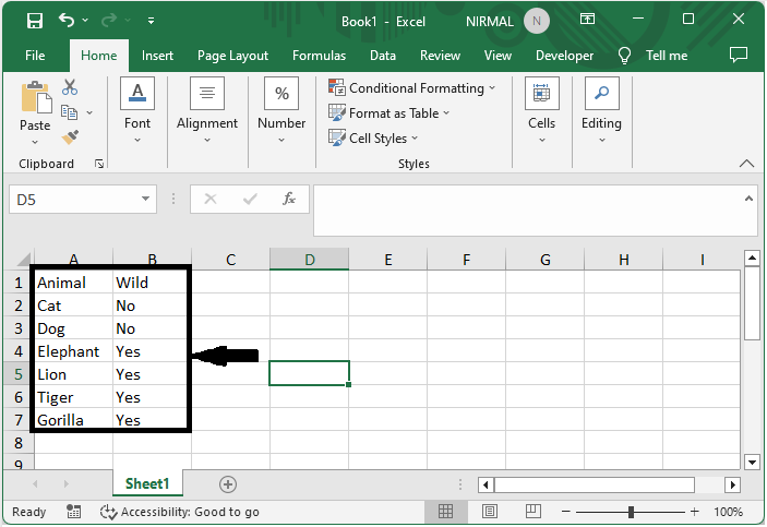 我们将使用快捷键来完成此任务。让我们来看一个简单的流程,了解如何在Excel中移动到或跳转到包含数据的最后一行或最后一列。