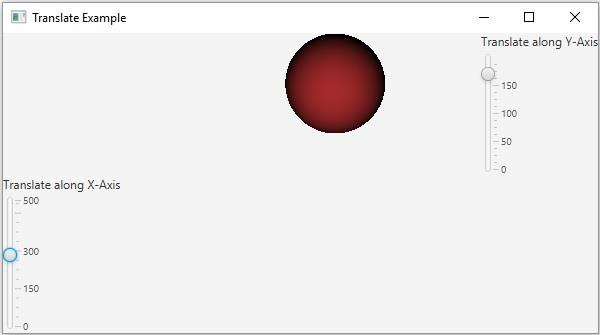 下面的 JavaFX 示例演示了平移变换。它包含一个二维几何图形和两个滑块,分别表示 x 和 y 平移值。如果移动滑块,则对象会沿着所选轴移动。
