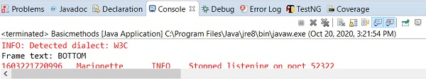 默认情况下,硒可以访问主浏览器驱动。为了访问框架元素,必须将驱动程序的焦点从主浏览器窗口切换到框架。要从框架重新聚焦到当前页面,需要使用 switchTo().defaultContent() 方法。