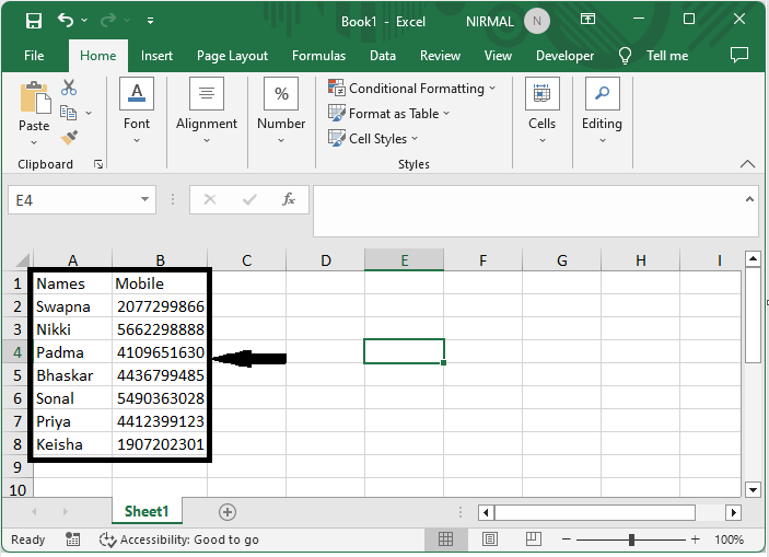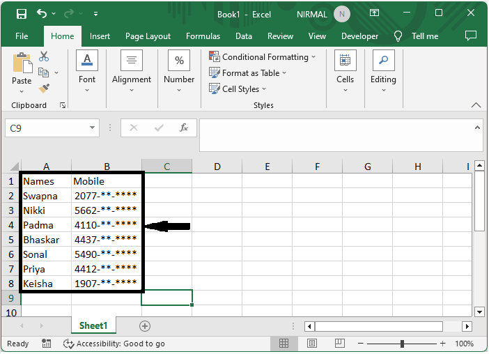 在这里,我们将首先选择单元格范围,然后对其进行格式化以完成任务。因此,让我们来看一个简单的过程,了解如何仅隐藏 Excel 中单元格值的一部分。