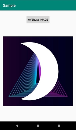 <?xml version="1.0" encoding="utf-8"?> <RelativeLayout xmlns:android="http://schemas.android.com/apk/res/android" xmlns:tools="http://schemas.android.com/tools" android:layout_width="match_parent" android:layout_height="match_parent" android:padding="16dp" tools:context=".MainActivity"> <Button android:onClick="OverLayImage" android:layout_width="wrap_content" android:layout_height="wrap_content" android:layout_centerHorizontal="true" android:layout_marginTop="10dp" android:id="@+id/btnOverlay" android:text="Overlay Image"/> <ImageView android:id="@+id/imageView" android:layout_width="match_parent" android:layout_height="match_parent" android:layout_below="@+id/btnOverlay"/> </RelativeLayout>