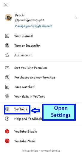 通过第二种方法在 Android 上的 YouTube 中更改观看历史记录设置也非常简单。分步操作如下: