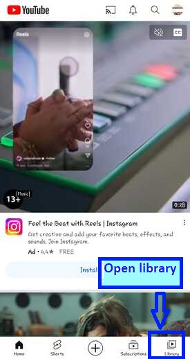 在 YouTube 应用的主页上,从屏幕底部的工具栏中选择“库”。