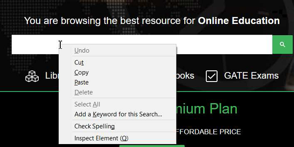 我们可以使用 Selenium ChromeDriver 来执行右键单击。在 Web 元素上右键单击时,上下文菜单将显示。例如,如果我们在文本区域上单击鼠标右键,就会弹出一个包含几个选项的附加菜单。