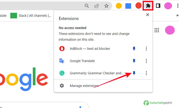 将必要的扩展程序固定在顶部。这将使您更容易快速访问它们。