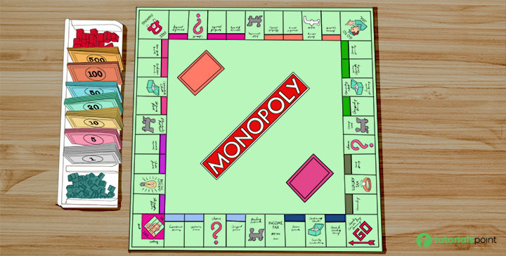 步骤1 - 首先,将机会卡和公共基金卡正面朝下放在棋盘上相应的位置。玩家的回合从他将自己的棋子放在棋盘上相应方格开始。对于每个棋子,第一个位置是“GO”区域。