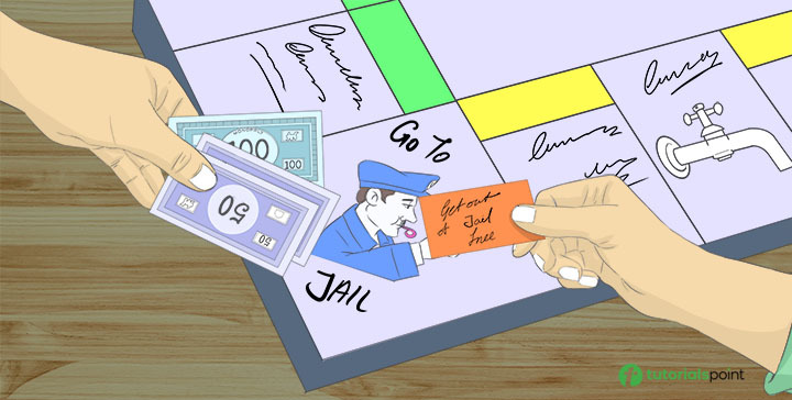 被捕的玩家有三种选择可以出狱。一种是掷出双倍,即两个骰子显示相同的数字;另一种是使用免狱卡。你可以从机会卡堆或公共基金卡堆中抽取免狱卡,或者以预定费用从其他玩家处购买。最后,你可以提前向银行支付$50来掷骰子。如果你掷出一个数字,你将前进相应数量的格数。