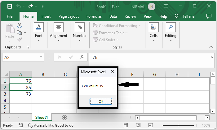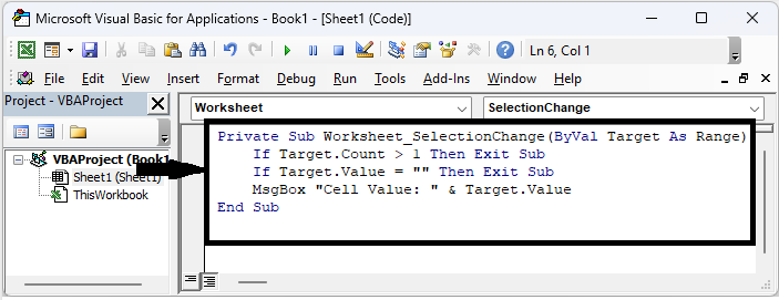 在这里,我们将 VBA 代码插入到工作表中以完成任务。让我们来看一个简单的过程,了解如何在 Excel 中点击时弹出单元格值。