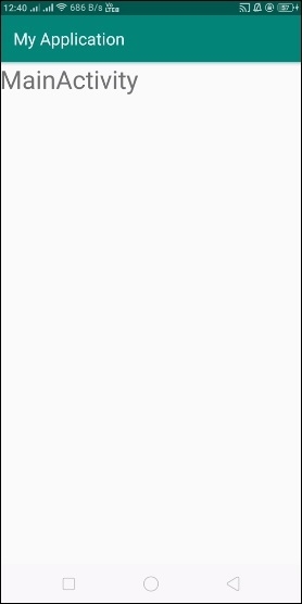 <?xml version="1.0" encoding="utf-8"?> <LinearLayout xmlns:android="http://schemas.android.com/apk/res/android" xmlns:app="http://schemas.android.com/apk/res-auto" xmlns:tools="http://schemas.android.com/tools" android:layout_width="match_parent" android:gravity="center" android:layout_height="match_parent" tools:context=".MainActivity"> <TextView android:id="@+id/text" android:textSize="30sp" android:layout_width="match_parent" android:layout_height="match_parent" /> </LinearLayout>