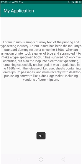 在上述代码中,我们已获取文本视图以显示段落,吐司将显示有关单词数的信息。