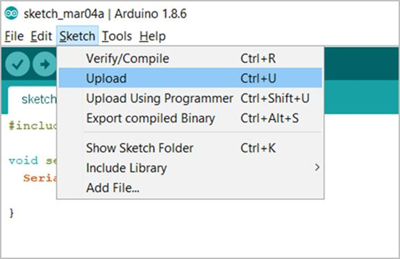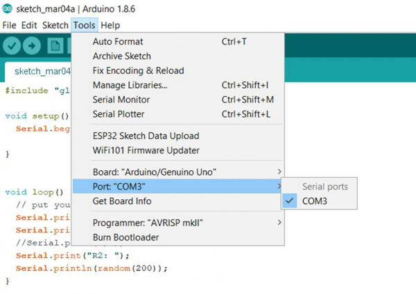 要使用 Arduino IDE 编写板代码,第一步需要确保在“工具 -> 板”中选择了正确的板,还要确保板与机器相连,并被选为正确的 COM 端口。