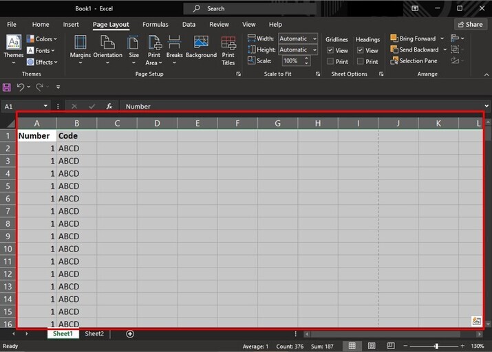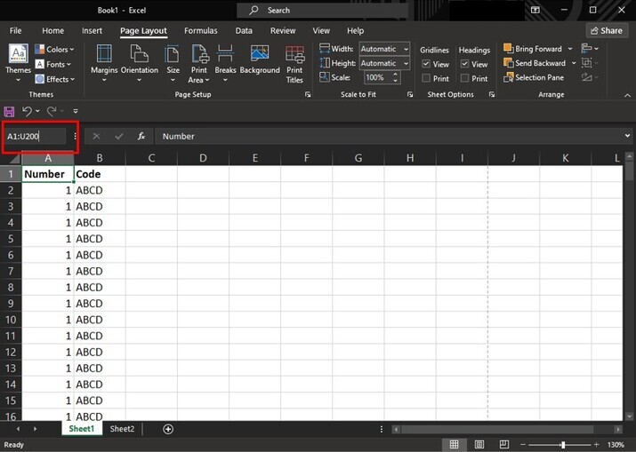 输入所需的范围,使用标准的Excel表示法(例如,在这种情况下为A1:U200)。
