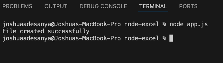 workbook.xlsx.writeFile("output.xlsx").then(() => {