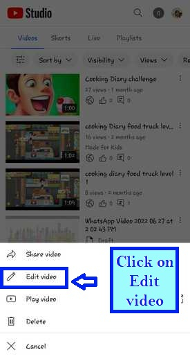 选择要更改缩略图的视频。点击三个点进行编辑。