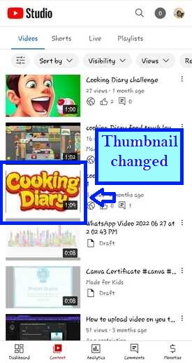 自定义缩略图已更改并上传,以提升频道观看次数。播放视频时可以看到最终输出。