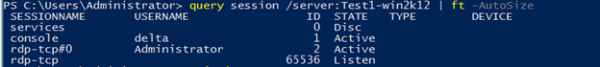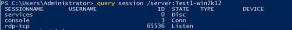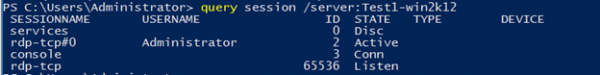 假设我们在名为 Test1-Win2k12 的远程计算机上面有以下活动会话,