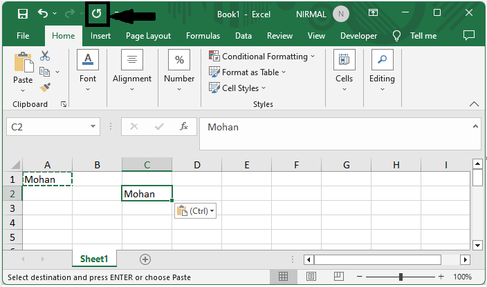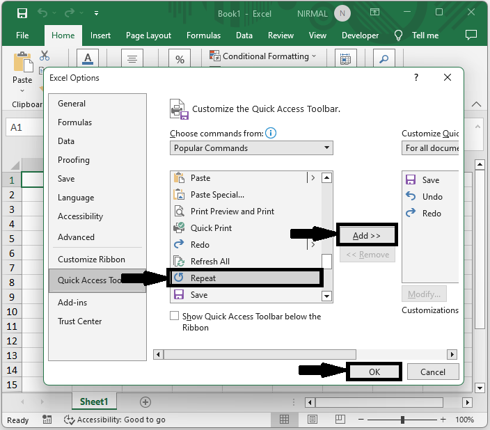在这里,我们将自定义Excel功能区来完成任务。让我们看看一个简单的过程,了解如何在Excel中重复上次或之前的操作。