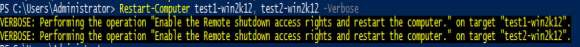 PS C:\Users\Administrator> Restart-Computer test1-win2k12 –Verbose