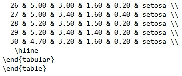 print(Xtable_iris,file="XtableIris30Rows.txt")