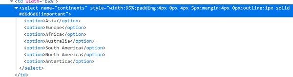 WebElement t=driver.findElement(By.xpath("//*[@name='continents']"));