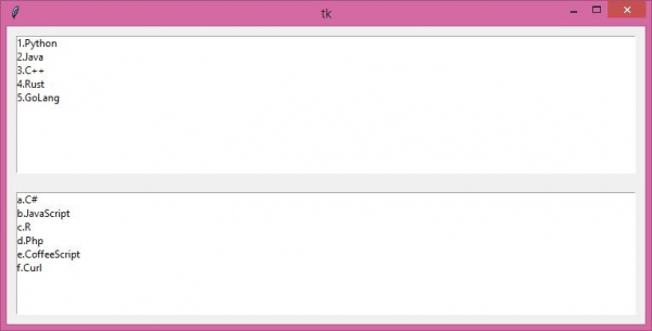 运行以上代码时,将显示一个包含两个 Listbox 的窗口。在进行选择时,我们可以从两个 Listbox 中选择多个项。