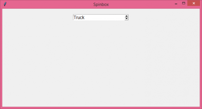 使用 **set** 方法设置 spinbox 的默认值。在这里,我们从 data 中选择了一个值并将其设置为默认值。**var.set('Truck')**。也可以使用 **var.set(data[2])**。