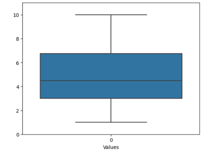 在以下示例中,我们将通过导入模块 seaborn 和 matplotlib.pyplot 开始程序,这有助于绘制图形图表。然后它使用列表中的随机数据来描绘虚假数据。接下来,使用名为 boxplot() 的方法以及对象引用 sns 创建箱线图。然后仅使用 ylim() [设置图形范围] 在垂直轴上设置限制,并仅使用 xlabel() [填写文本以在水平轴上显示某些内容] 在 x 轴上设置标签。最后,使用 show() 方法获取输出。
