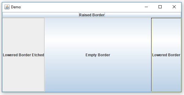 loweredLabel.setBorder(loweredBorderEtched);以下是如何为组件设置凸和凹刻蚀边框的示例 -
