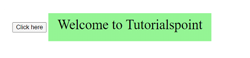 在这里,我们在样式表中定义了一个名为“green-background”的 CSS 类,该类具有绿色的背景颜色。现在,当单击按钮时,此类将添加到 span 元素中。