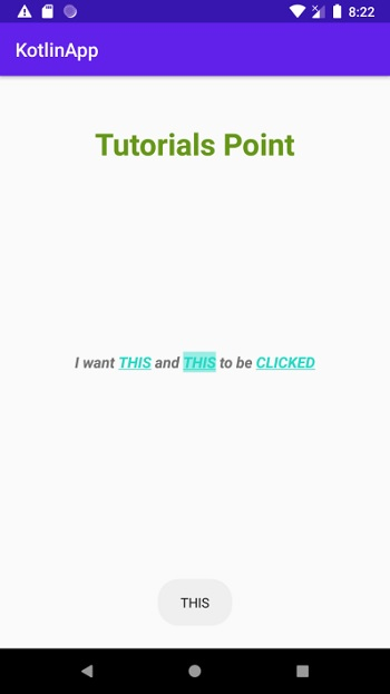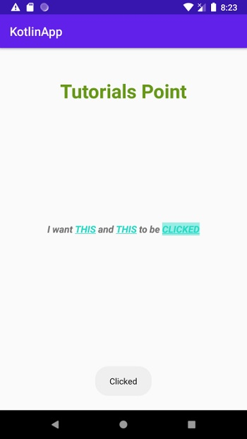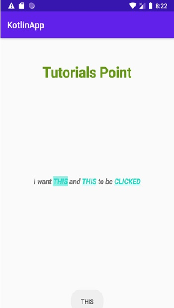 本示例演示如何在 Kotlin 中设置 Android 文本视图的一部分作为可点击文本。