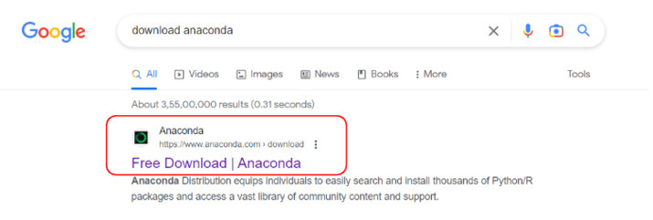 步骤 1 - 在浏览器搜索框中搜索 Anaconda。