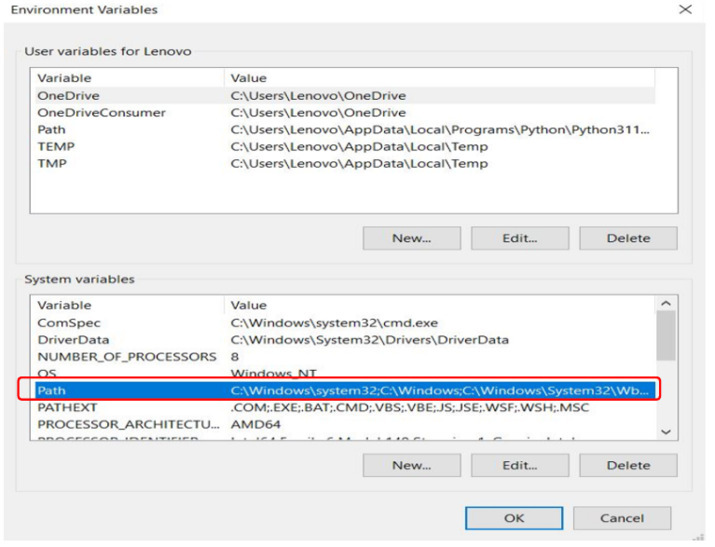 步骤 8 - 环境变量界面打开,并在系统变量中检查路径选项。有以下两种设置路径的方法: