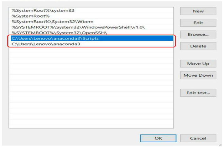 选择路径并单击编辑选项,它将打开在编辑环境变量中设置的新路径。