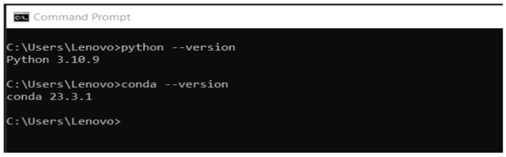 步骤 11 - 为了确认,使用命令 python --version 获取系统中安装的 python 版本,其次使用命令 conda --version 获取 Anaconda Navigator 的版本。
