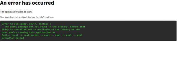 Shiny Server 带有一个示例交互式文档,可在 http://your_server_ip:3838/sample-apps/rmd/ 获取。如果您现在转到该 URL,您将看到一个错误。