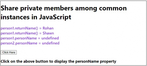 以下是 JavaScript 中在常见实例之间共享私有成员的代码 −