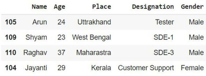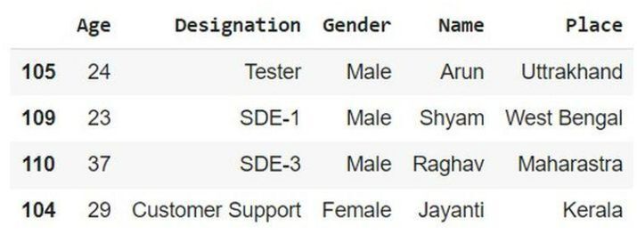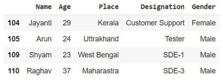 ('Jayanti', 29, 'Kerala', 'Customer Support','Female')]