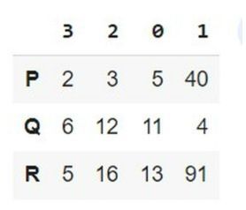 在以下示例中,通过导入名为 pandas 的模块开始程序。获取名为 pd 的对象引用,稍后将在内置方法 sort_values 中使用它。然后创建列表,该列表创建三行不同项目的行数据(即 P、Q 和 R),并将其存储在变量 list1 中。接下来,使用 pandas 模块的 DataFrame,它接受两个参数——list1(用于使用数据的先前变量名称)和 index(此参数使用内置方法列表设置所有列的值)。继续使用名为 sort_values 的内置方法,它接受以下参数: