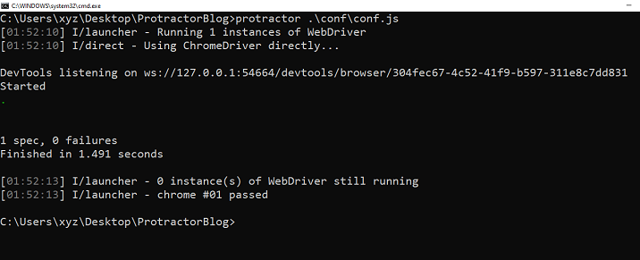 此test.js文件测试网页上ID为'myDiv'的特定元素的class属性是否包含字符串'Web'。此外,它在加载网页之前禁用AngularJS同步,以确保可以正确测试页面上任何非Angular元素。