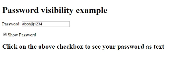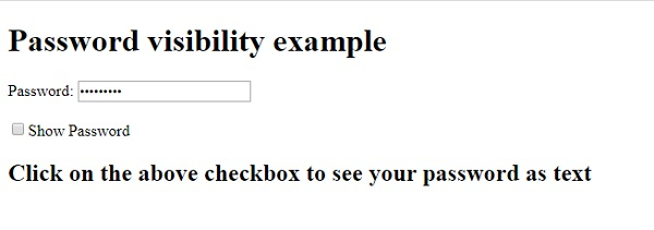 若要通过 JavaScript 在密码可见性之间切换,代码如下所示 −