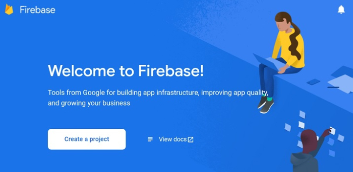 步骤1 − 访问Firebase网站,点击“开始使用”按钮,要创建新项目,点击“创建项目/添加项目”按钮。