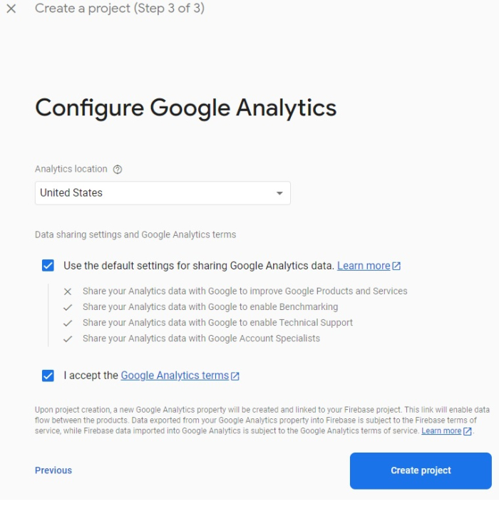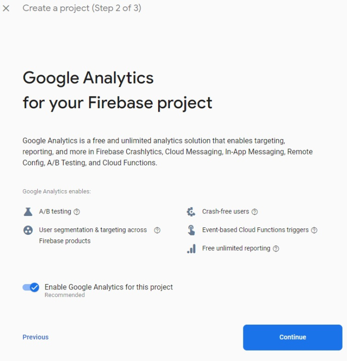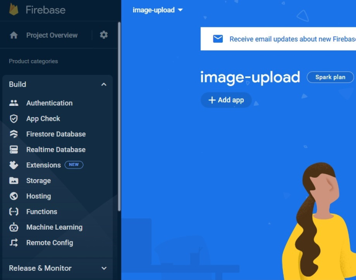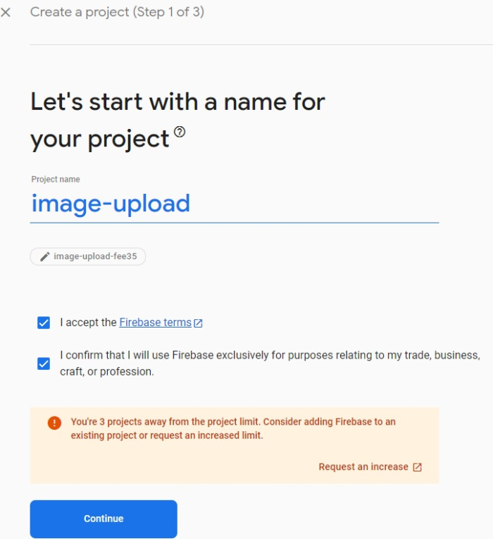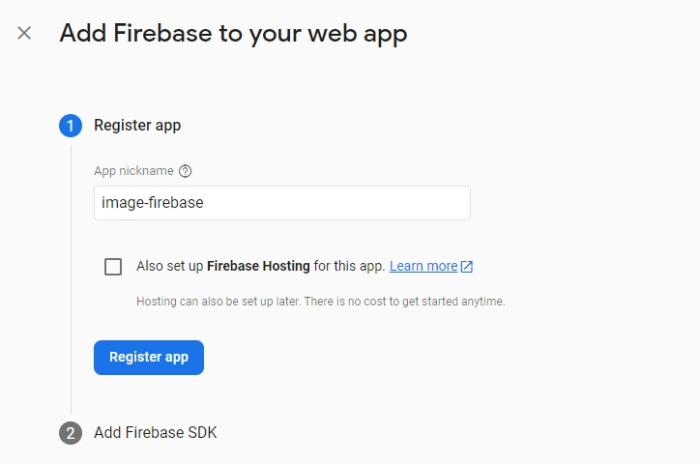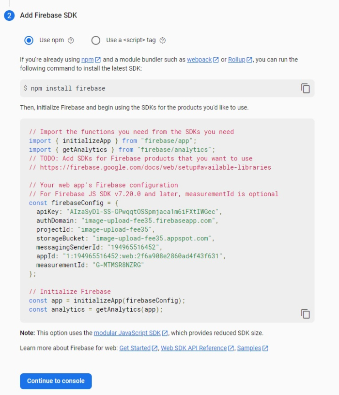 要将Firebase连接到项目,您应该在此处创建一个Firebase项目,以下是创建和激活存储服务以将图片上传到Firebase存储的逐步过程。