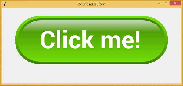 #Import all the necessary libraries from tkinter import * #Define the tkinter instance win= Toplevel() win.title("Rounded Button") #Define the size of the tkinter frame win.geometry("700x300") #Define the working of the button def my_command(): text.config(text= "You have clicked Me...") #Import the image using PhotoImage function click_btn= PhotoImage(file='clickme.png') #Let us create a label for button event img_label= Label(image=click_btn) #Let us create a dummy button and pass the image button= Button(win, image=click_btn,command= my_command, borderwidth=0) button.pack(pady=30) text= Label(win, text= "") text.pack(pady=30) win.mainloop()