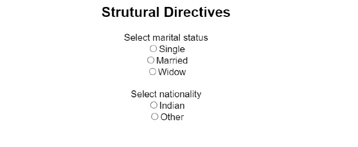结构指令用于更改 DOM 元素的设计模式。使用这些指令,我们可以重新设计和重新装饰 DOM 元素。我们可以使用结构指令来操作和构建 DOM。内置指令例如 ngIf、ngFor 和 ngSwitch。