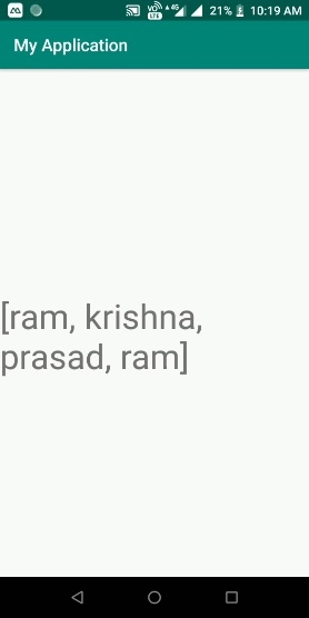 <?xml version = "1.0" encoding = "utf-8"?> <LinearLayout xmlns:android = "http://schemas.android.com/apk/res/android" xmlns:app = "http://schemas.android.com/apk/res-auto" xmlns:tools = "http://schemas.android.com/tools" android:layout_width = "match_parent" android:gravity = "center" android:layout_height = "match_parent" tools:context = ".MainActivity" android:orientation = "vertical"> <TextView android:id = "@+id/actionEvent" android:textSize = "40sp" android:layout_marginTop = "30dp" android:layout_width = "wrap_content" android:layout_height = "match_parent" /> </LinearLayout>
