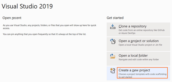 启动Visual Studio 2019,然后点击**创建新项目**。